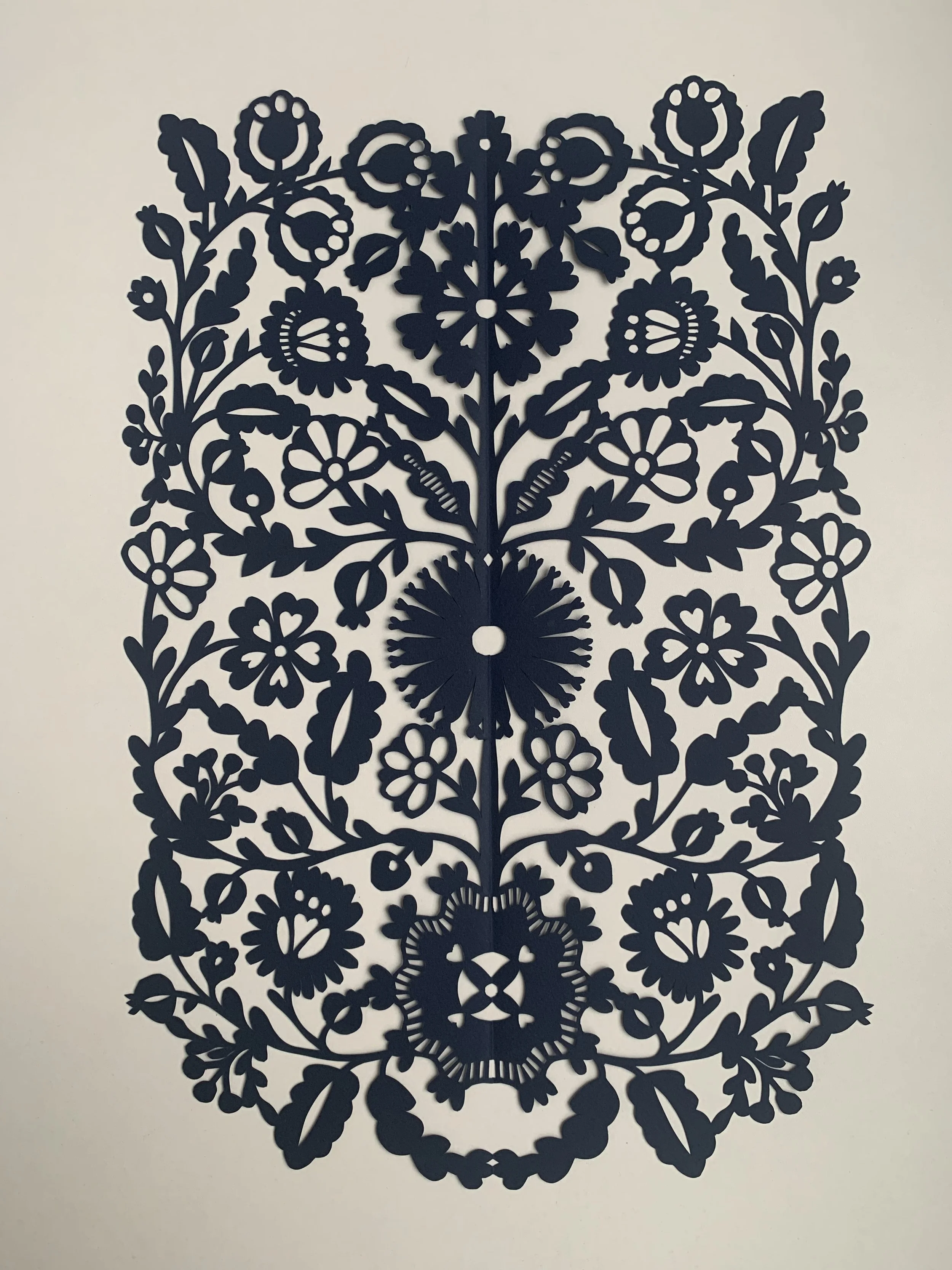 Then I saw an advertisement that featured some cut paper elements and I realized - ‘that’s it’’. I started in the spring of 2021 and very quickly cutting these patterns became much more than a creative outlet for me. At the time, the threat of a new wave of Russian aggression was growing and by the end of the year our family had suitcases packed at the door, ready to flee Kyiv at a moment’s notice. We were really living day-by-day. This creative process became a form of therapy and relaxation for me - for those few hours I had full control over that single sheet of paper and could let the stress around me fade into the background.